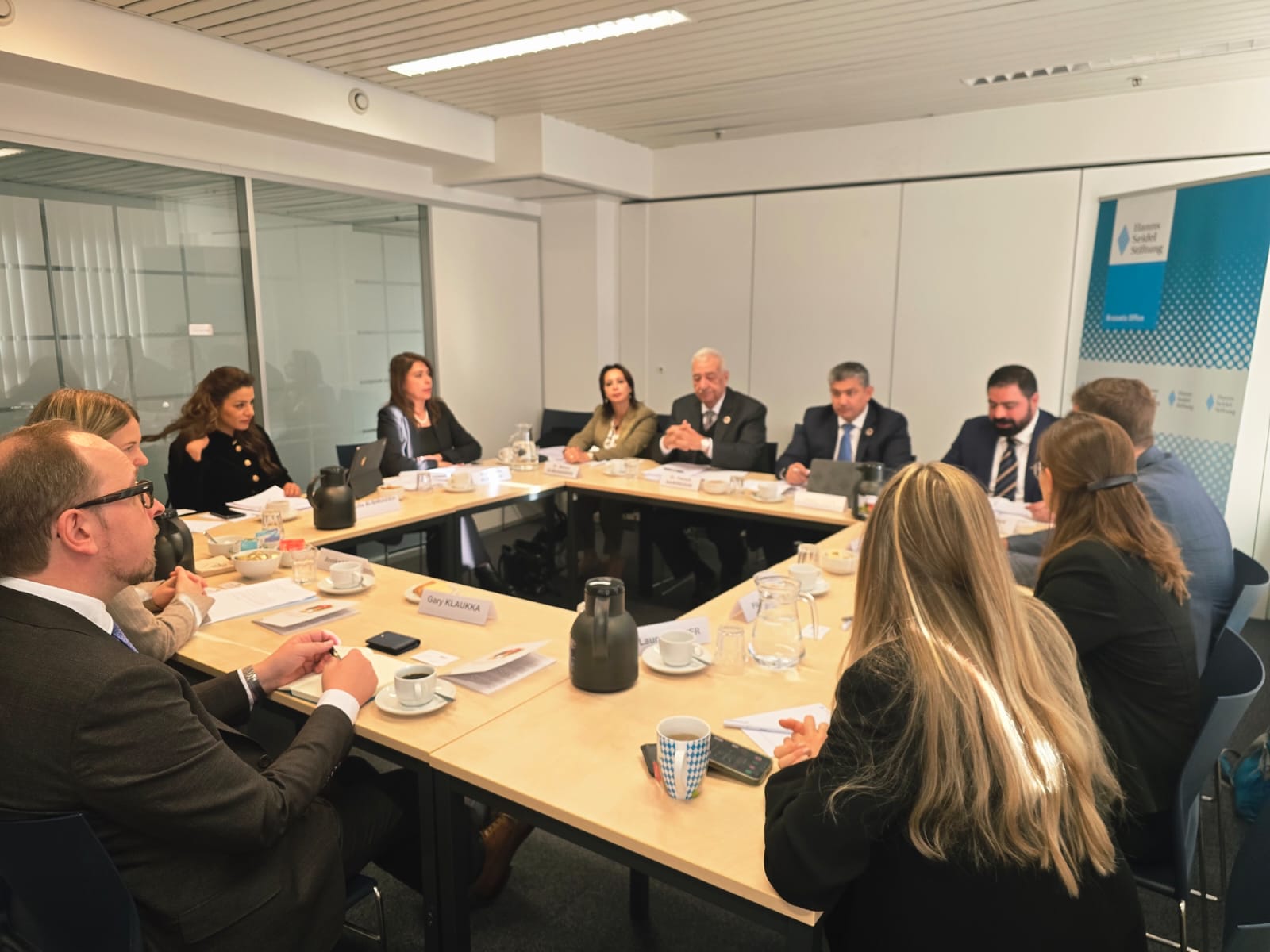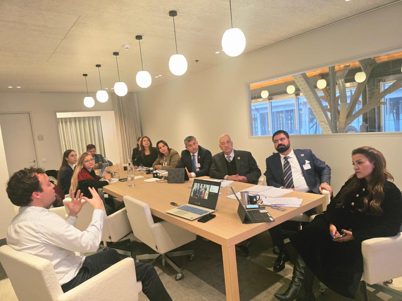 وخلال الزيرة عقد الوفد الممثل عن الميثاق الوطني اجتماعا اجتمع مع جاري كالاوكا المدير التنفيذي للشبكة الاوروبيه للمؤسسات السياسية.