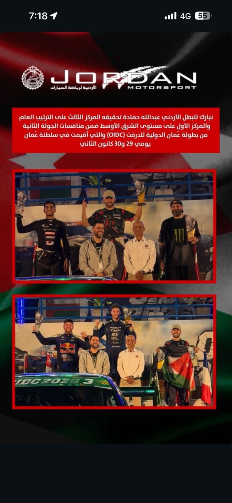 عبدالله حمادة يتألق ويضع الأردن على منصة التتويج العالمية في سباقات السيارات
