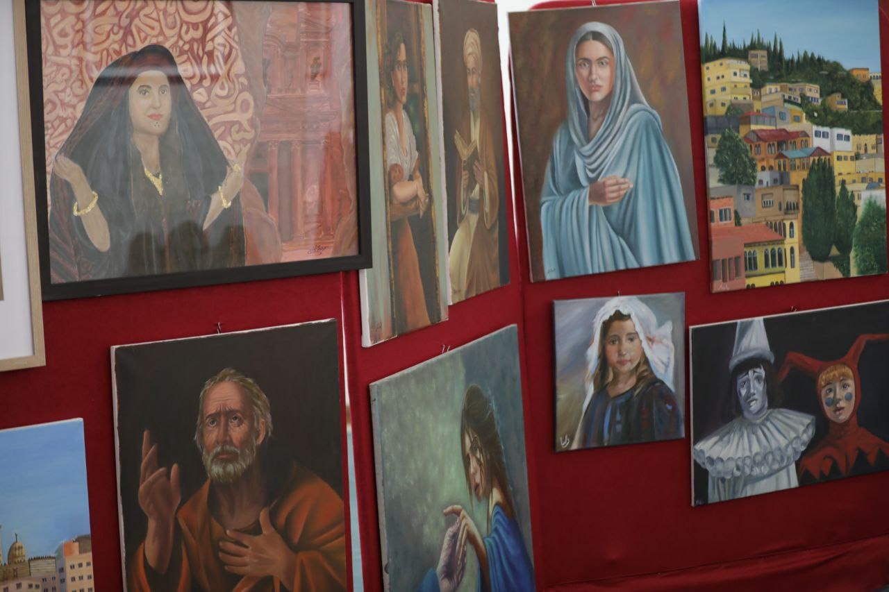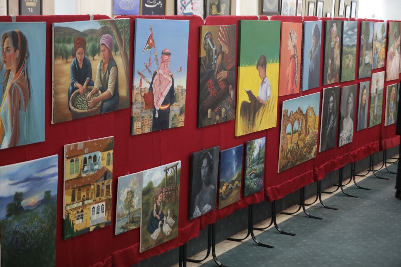 وفي الجزء الثاني من الاحتفال افتتح الرواشدة معرض الفنون التشكيلية والخط العربي لطلاب وطالبات المعهد في قاعة فخر النساء زيد بالمركز، وضم ما يزيد على 150 لوحة مختلفة الاحجام، وظفت فيها مختلف الخامات الفنية، وعكست مدارس فنية متنوعة، وعبرت عن مشاعر الولاء للقيادة الهاشمية، والانتماء للاردن، ومضامين وطنية عكست ما يتمتع به الاردن من ثراء في التراث والطبيعة والمواقع التاريخية والاثرية، علاوة على الانتماء العربي والاسلامي من خلال ما عبرت عنه لوحات فن الخط العربي.