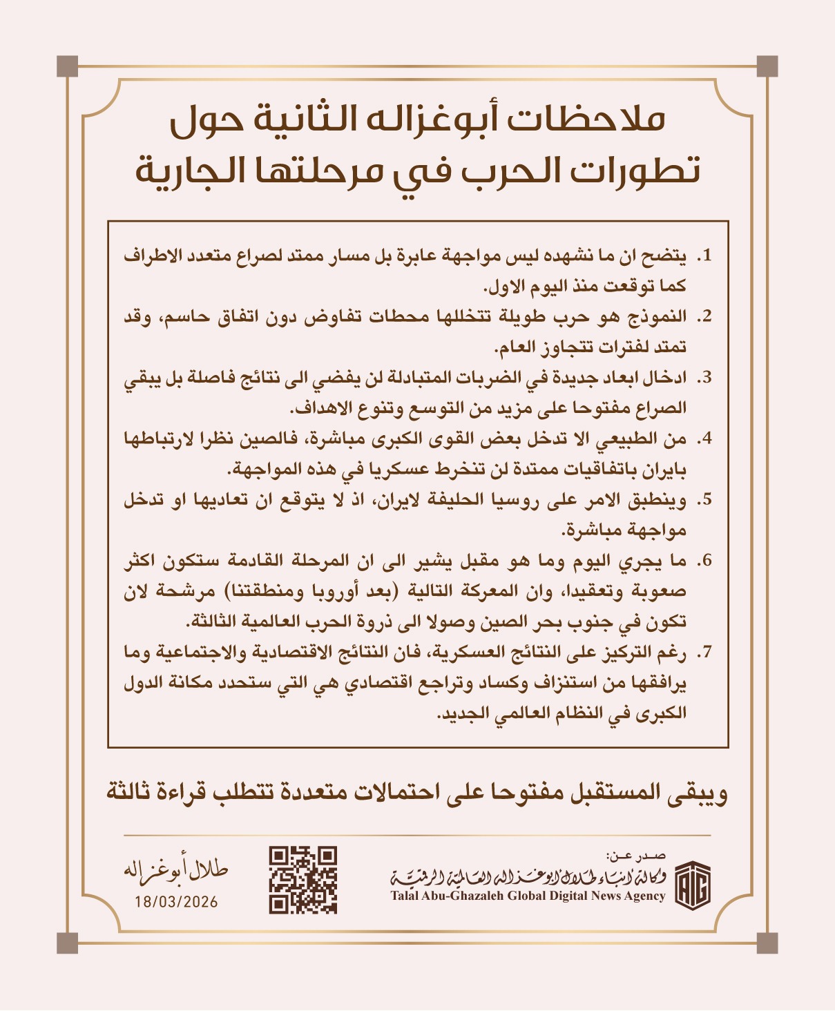 ملاحظات ابو غزاله الثانية حول تطورات الحرب في مرحلتها الجارية   |   جورامكو تنفذ حملة ملابس الشتاء لـ الأسر الأقل حظاً   |   الحجاج: دماء شهداء الواجب ترسم طريق الحسم في مواجهة آفة المخدرات   |   نوران الزواهرة وقصة نجاح أردنية بدعم من مركز تطوير الأعمال   |   شركة جيه تي انترناشونال (الأردن) تعزز روح العطاء في رمضان   |   Orange Jordan Team Volunteers at Mawa ed Al-Rahman for Social Solidarity in Ramadan   |   البنك العربي ينفذ عدداً من الأنشطة التطوعية خلال شهر رمضان بالتعاون مع تكية أم علي   |   بنك الأردن يشارك الأطفال فرحة رمضان ضمن مبادرة 《ارسم بسمة》   |   《جوائز فلسطين الثقافية》 تمدد باب الترشح حتى نهاية آذار 2026   |   جدار سامسونج السحري في مواجهة حذر أبل   |   البدادوة: النقل المدرسي المجاني خطوة عملية لحماية الطلبة وتخفيف كلفة التعليم على الأسر   |   تعامل دولة الإمارات مع تداعيات الحرب الجارية   |   رحيل قائد عظيم لا زال إسمه يشع نور    |   فريق 《سفراء العطاء》في بنك صفوة الإسلامي يشارك في برنامج موائد الرحمن مع تكية أم علي   |   دار الحسام للعمل الشبابي تقيم إفطارًا رمضانيًا بتشريف ورعايه سمو الأمير مرعد بن رعد   |   خطر لي قبل النوم، أن ملكنا طيب جدا، قلبه صافي هذا الرجل..   |   *هذا خالي*   |   《تمريض》عمان الأهلية تُنظّم ندوتين توعويتين بالمركز الصحي بعين الباشا   |   الأمن الوطني وحماية المصالح الوطنية العليا أولويات المرحله القادمة   |   سامي عليان يشيد بجهود الدفاع المدني الأردنيويوجه رسالة شكر للعميد ناصر السويلميين ونشامى الدفاع المدني   |