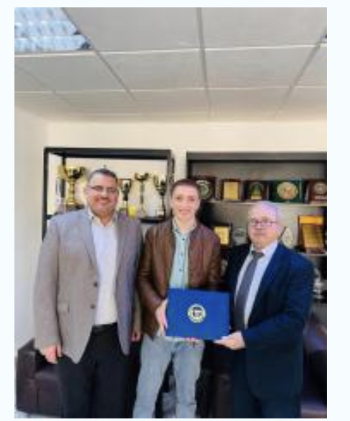 كرّمت جامعة فيلادلفيا الطالب محمد عصام محمد سعد النقشبندي، من تخصص التصميم الداخلي في كلية العمارة والتصميم، تقديرًا لمشاركته المتميزة في مسابقة مقرئ الطلبة الوافدين لتلاوة وتجويد القرآن الكريم في دورتها الرابعة لعام 2026، والتي نظمتها وحدة شؤون الطلبة الوافدين في وزارة التعليم العالي والبحث العلمي.