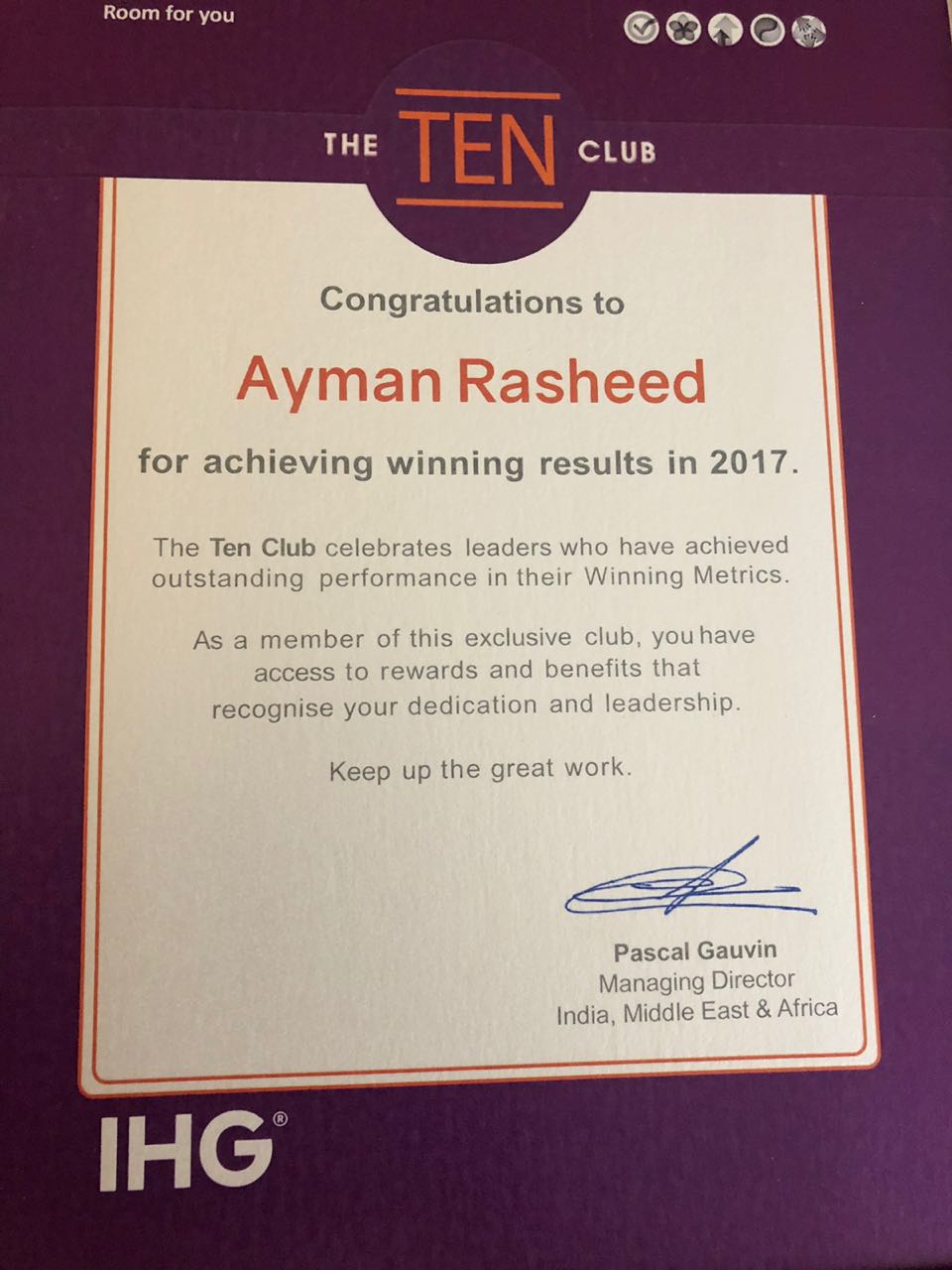 وعلق السيد أيمن رشيد على الفوز بالجائزة، قائلا: "نجاحاتنا وإنجازاتنا تحققت بفضل العمل الدؤوب والتحفيز المستمر من قبل زملائنا، وكل ذلك على الرغم من التحديات التي واجهناها. ونحن نتطلع إلى تحقيق المزيد من النجاحات من خلال التعاون المستمر بين أفراد فريق "هوليداي إن عمان".